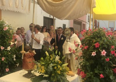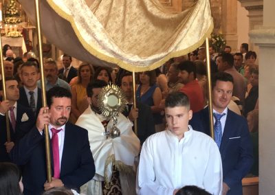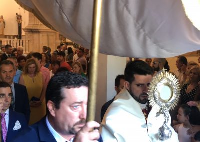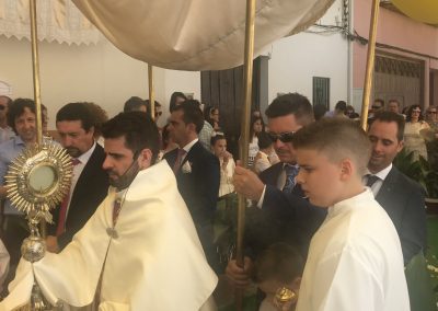 El recién elegido Alcalde de La Guardia Juan Jesús Torres Jiménez, asiste a la puesta de largo de la Festividad del Corpus, que se celebró el pasado domingo día 22 de junio por las calles del tradicional recorrido de costumbre que como cada año los vecinos y vecinas de la localidad engalanan para recibir al Santísimo y acompañar a los niños y niñas que hicieron este 2019 su primera comunión.