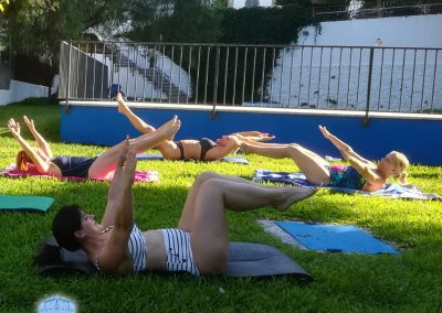 Y para terminar el día, hemos trasladado algunas de las actividades del gimnasio a la zona de la piscina infantil, para poder hacer ejercicio al aire libre.