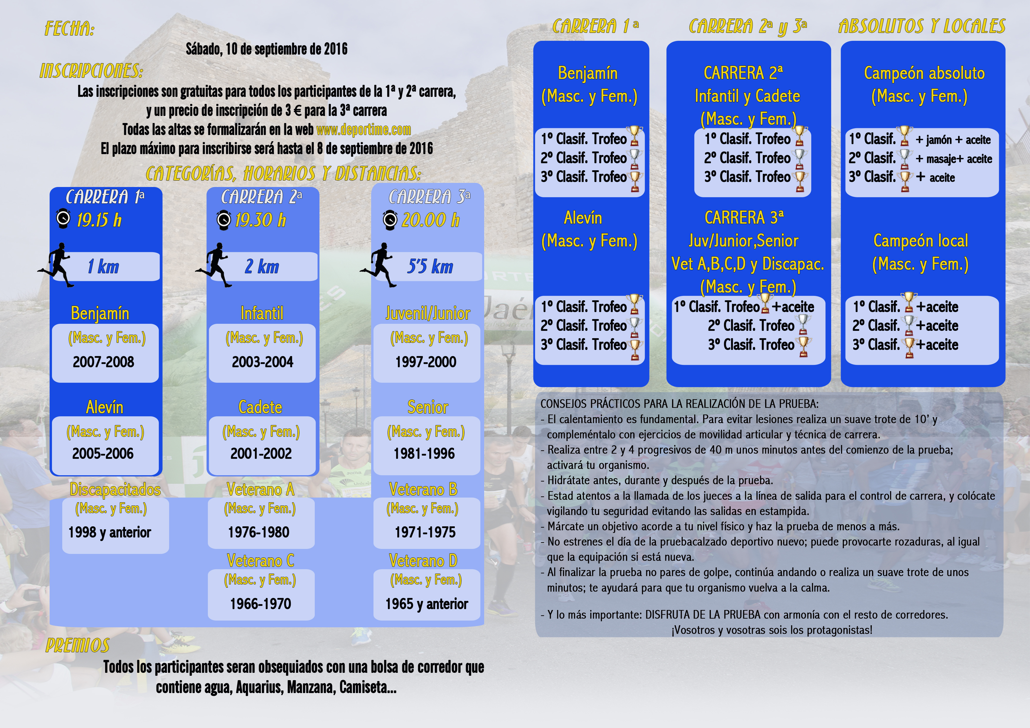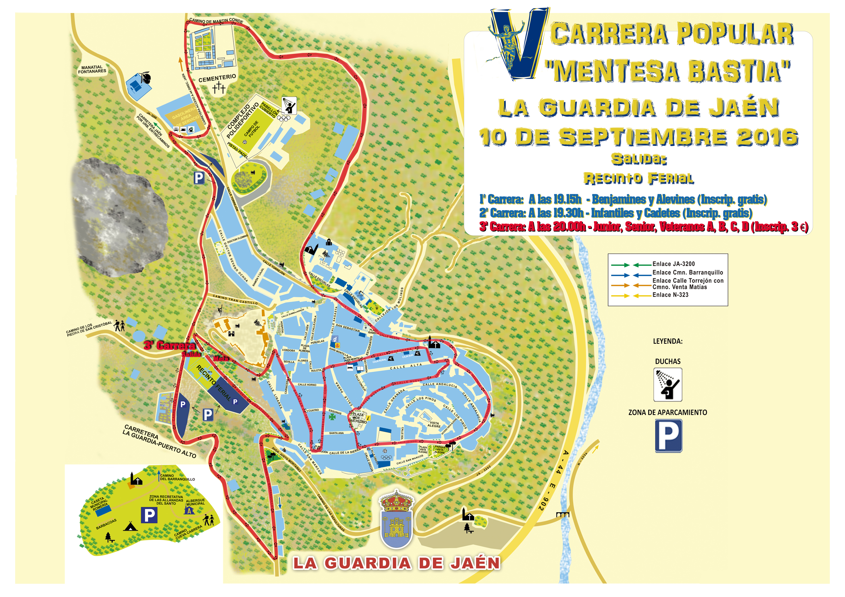 La V Carrera Popular “Mentesa Bastia” se celebrará, en La Guardia de Jaén, el día 10 de septiembre. En ella participarán corredores de diferentes categorías, entre ellas benjamines, alevines, infantiles, cadetes, junior, senior, veteranos y discapacitados, todas ellas en modalidades masculina y femenina. En total, habrá 22 categorías y cerca de 400 corredores, una cifra muy positiva que crece año tras año. De hecho, la carrera se consolida con el paso de las ediciones dentro del calendario de carreras populares de la provincia, entre las que cada vez destaca con más presencia. Este año, las pruebas serán: