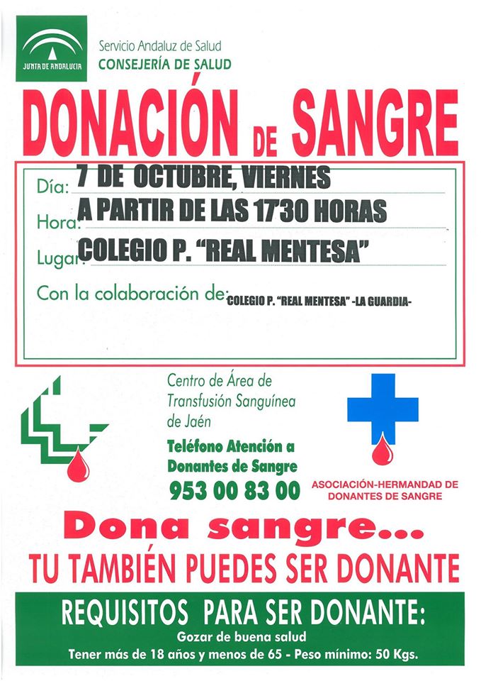 en la calle Estadio  la Asociación Hermandad de Donantes de Sangre de Jaén en colaboración con el Ayuntamiento de La Guardia de Jaén visita La Guardia para que todas aquellas personas interesadas en donar sangre puedan aportar al banco de transfusión de Jaén su granito de arena.